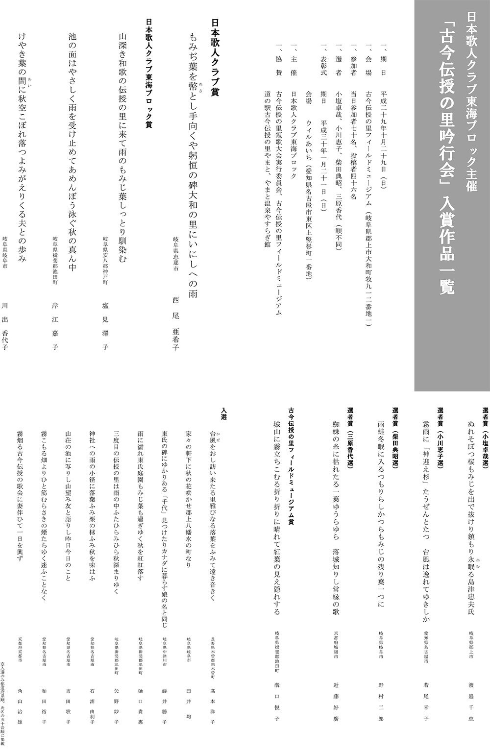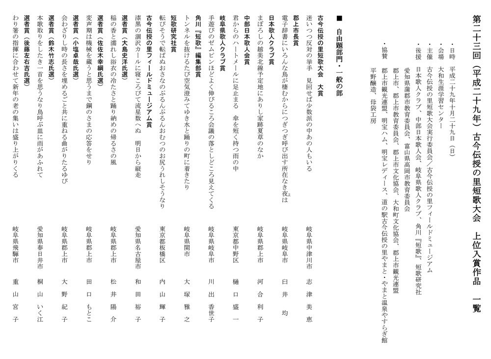 古今伝授の里フィールドミュージアム 投稿短歌(2017年12月投稿分まで)