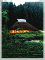 一部に茅葺を残した、鉄骨造り銅板葺きの建物です。元の屋根は茅葺でしたが、茅の老朽化により銅板葺へと変更しました。(右下の写真は、茅葺屋根当時の様子です。)茅葺屋根の持つ緩やかな曲線(むくり)を銅板葺きで再現しています。濡れ縁からは、茅葺を垣間見ることができます。